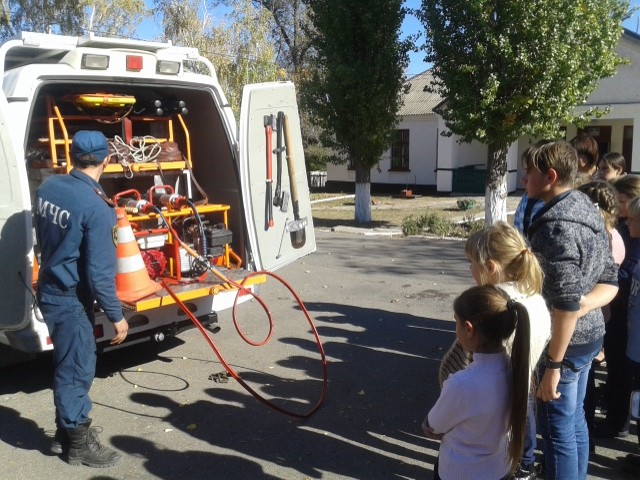 18 октября 2018 года в МОУ «Родниковская школа» состоялась встреча с представителями отряда МЧС Амвросиевского района. Для учащихся 1-9 классов был проведен необычный урок по гражданской обороне. В ходе встречи учащиеся узнали о предназначении отряда МЧС, вспомнили правила поведения при возникновении чрезвычайных ситуаций. Сотрудники отряда продемонстрировали учащимся спасательное оборудование, одежду, показали приемы работы. Встреча имела пропагандистско-разъяснительный характер, так как предметом и целью деятельности МЧС является максимально возможное снижение вероятности гибели людей в экстремальных ситуациях.