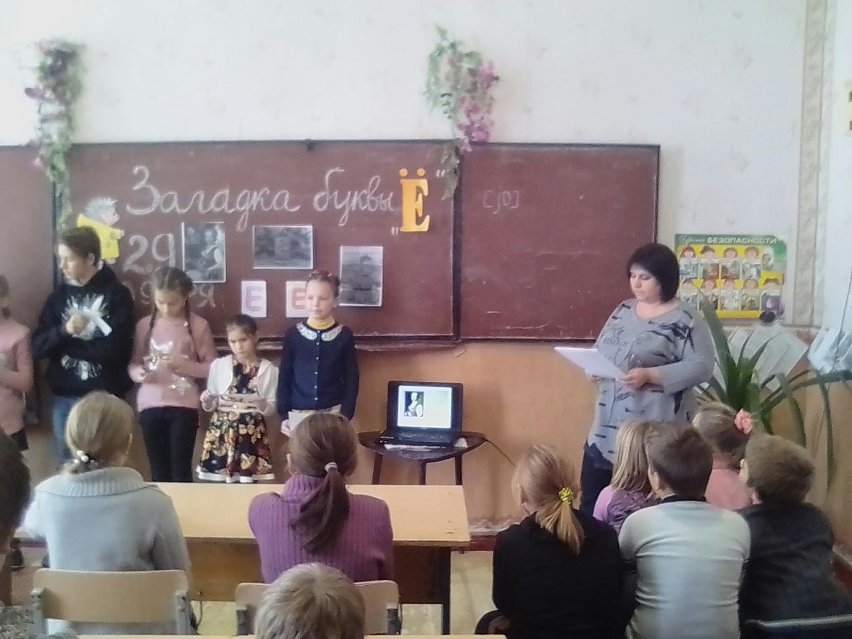 30 ноября 2018 года в МОУ «Родниковская школа» учитель литературы Зледенная Наталья Викторовна провела мероприятие «Загадка буквы «Ё»» .