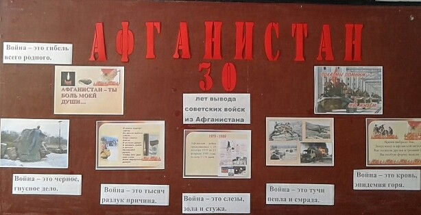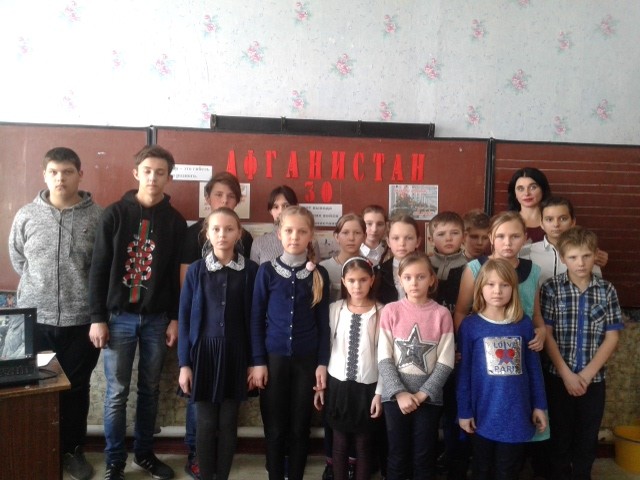 В МОУ «Родниковская школа» 15 февраля 2019 года учитель истории Кисель Людмила Васильевна провела литературно – музыкальную композицию, посвящённую годовщине вывода войск из Афганистана «Герои, вы в наших сердцах !»