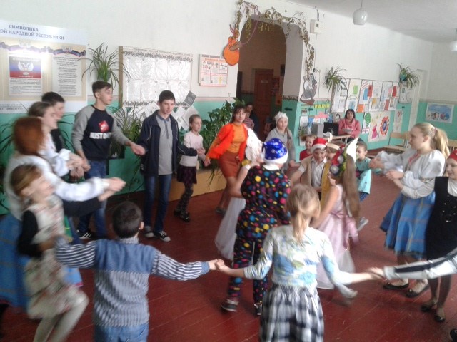 Скоморохи и театрализованные герои развлекали гостей праздника шутками и прибаутками. Развлекательная программа сопровождалась выступлениями творческих коллективов школы. Гости праздника отведали вкуснейшие блины, приняли участие в конкурсе «блинные бега», а также на время съели наибольшее количество этого главного атрибута Масленицы.
